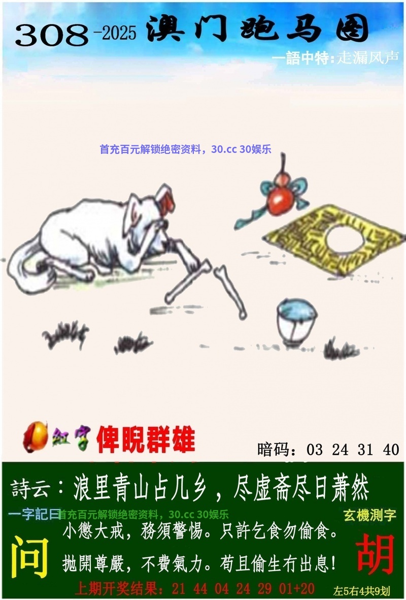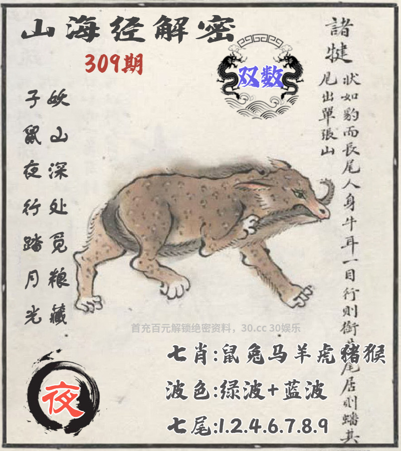 309期:开奖时间2025年11月05(星期三)晚9:30开(农历九月十六 虎冲猴)